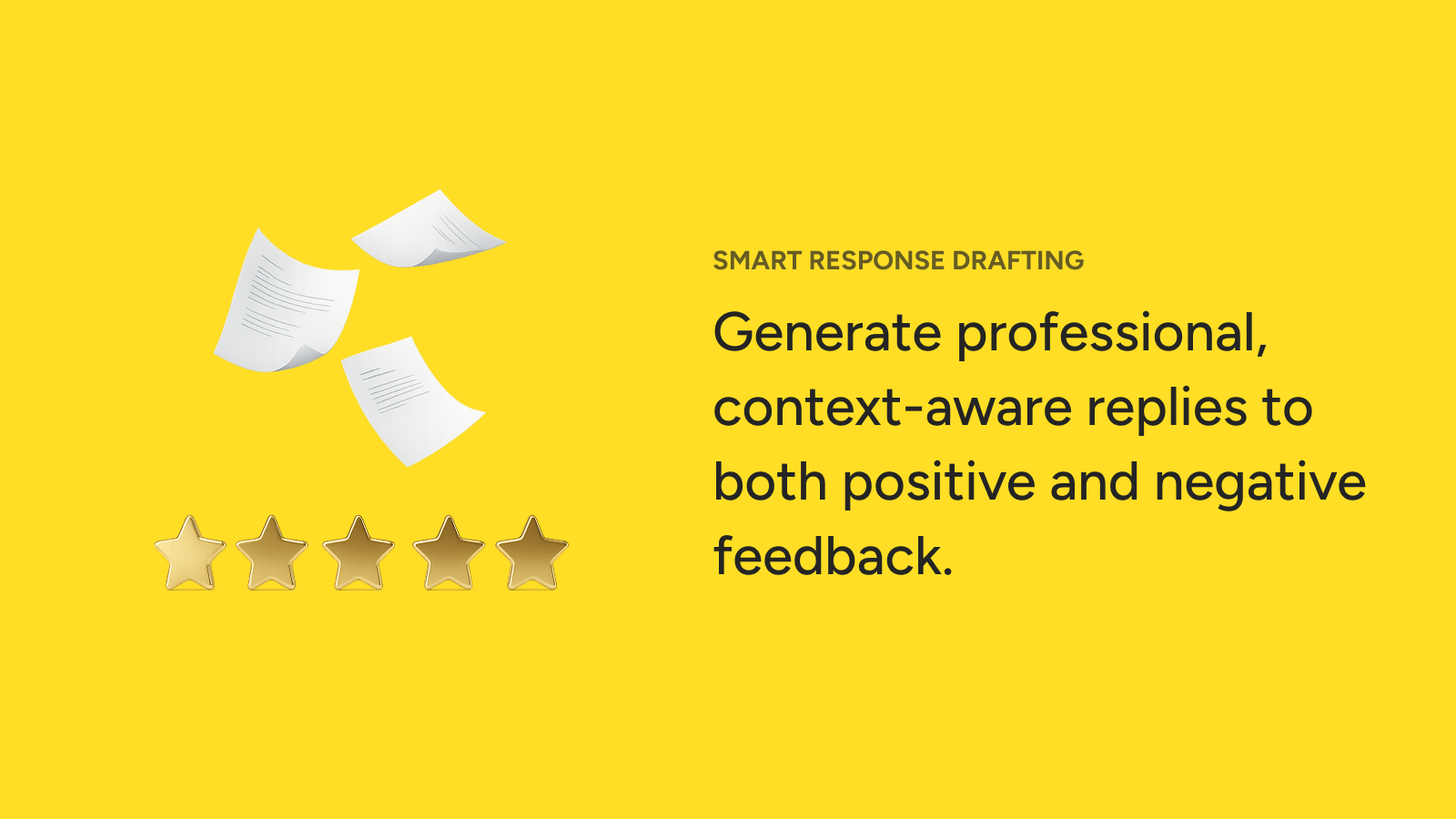 - Automated response drafting: Generate professional and tailored responses to customer reviews, ensuring consistency and saving significant time.