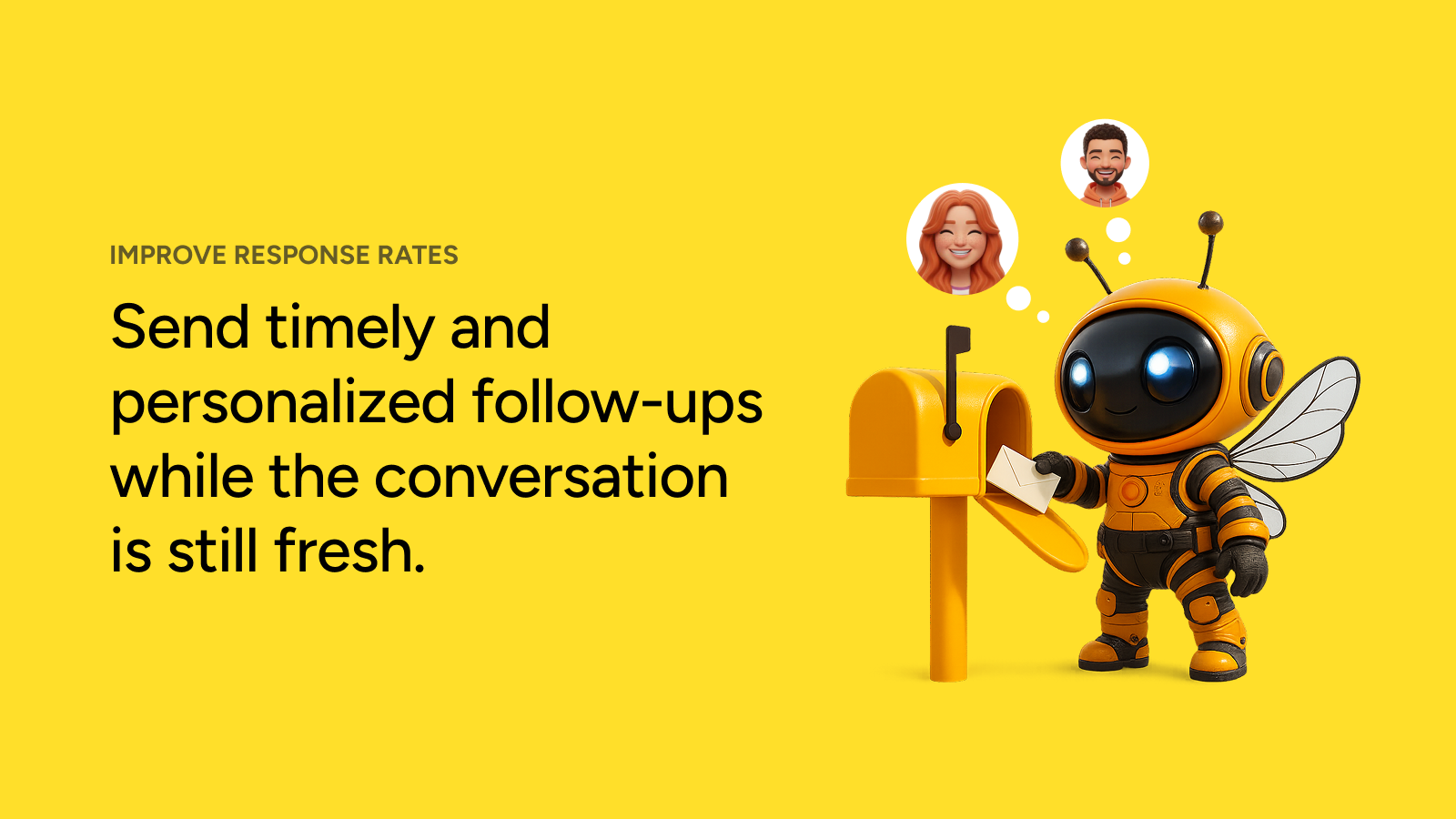 - Delayed communication: Speeds up the follow-up process, allowing you to send messages while the conversation is still fresh in the recipient's mind.