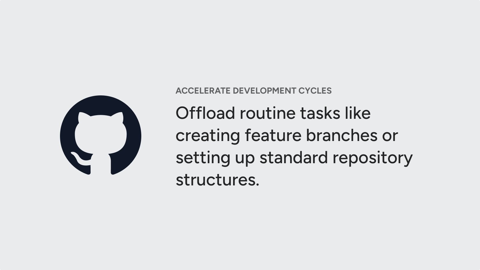 • Reduces manual effort: Automate repetitive tasks like repository setup, branch creation, and issue management.
