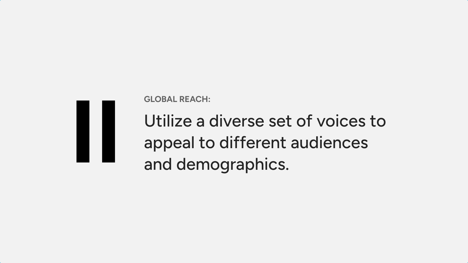 - Consistent brand voice: Apply specific voices across all your platforms for a unified and professional sound.