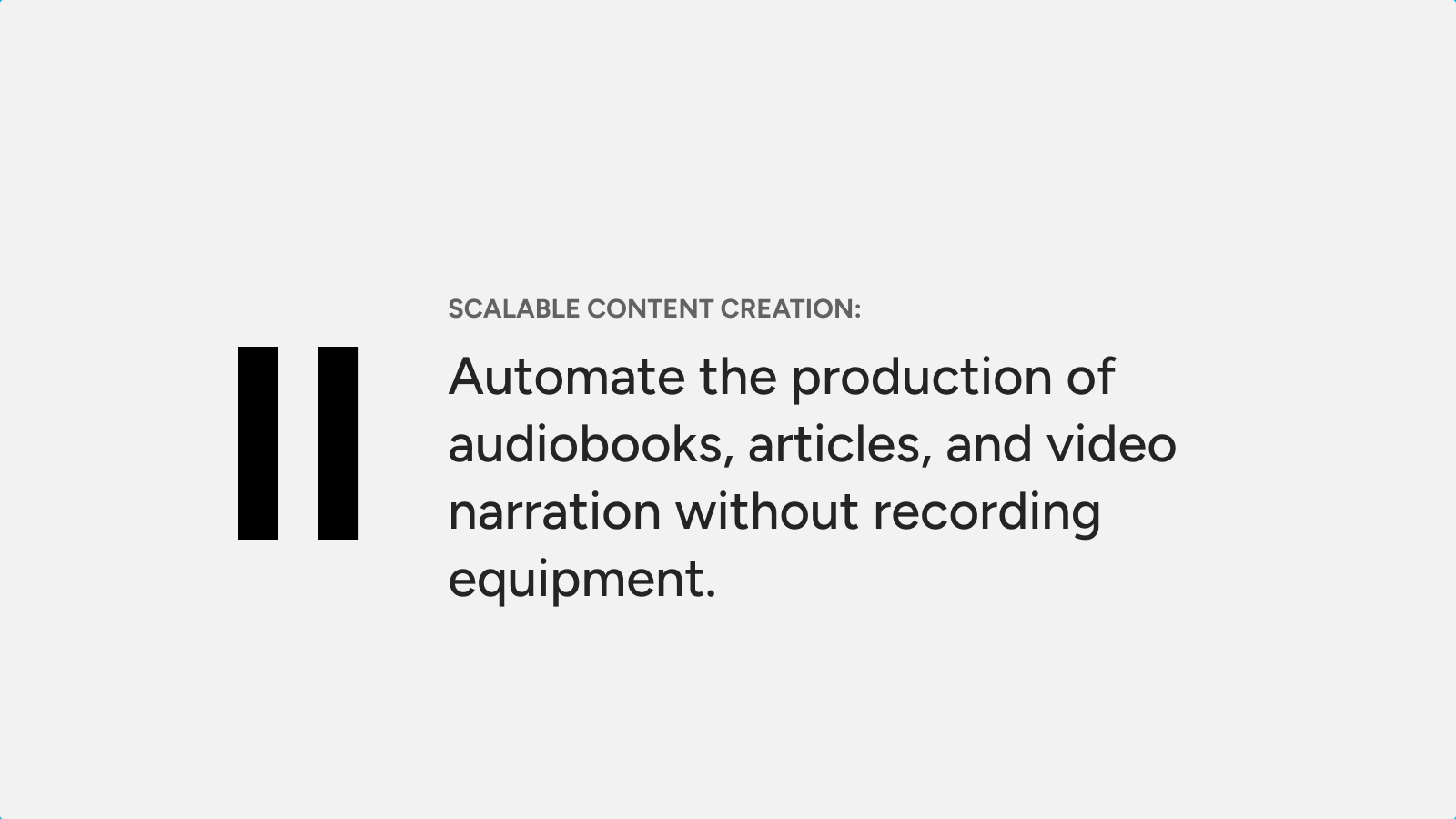 - Enhanced content creation: Produce high-quality audio for podcasts, videos, e-learning modules, and more, quickly and efficiently.