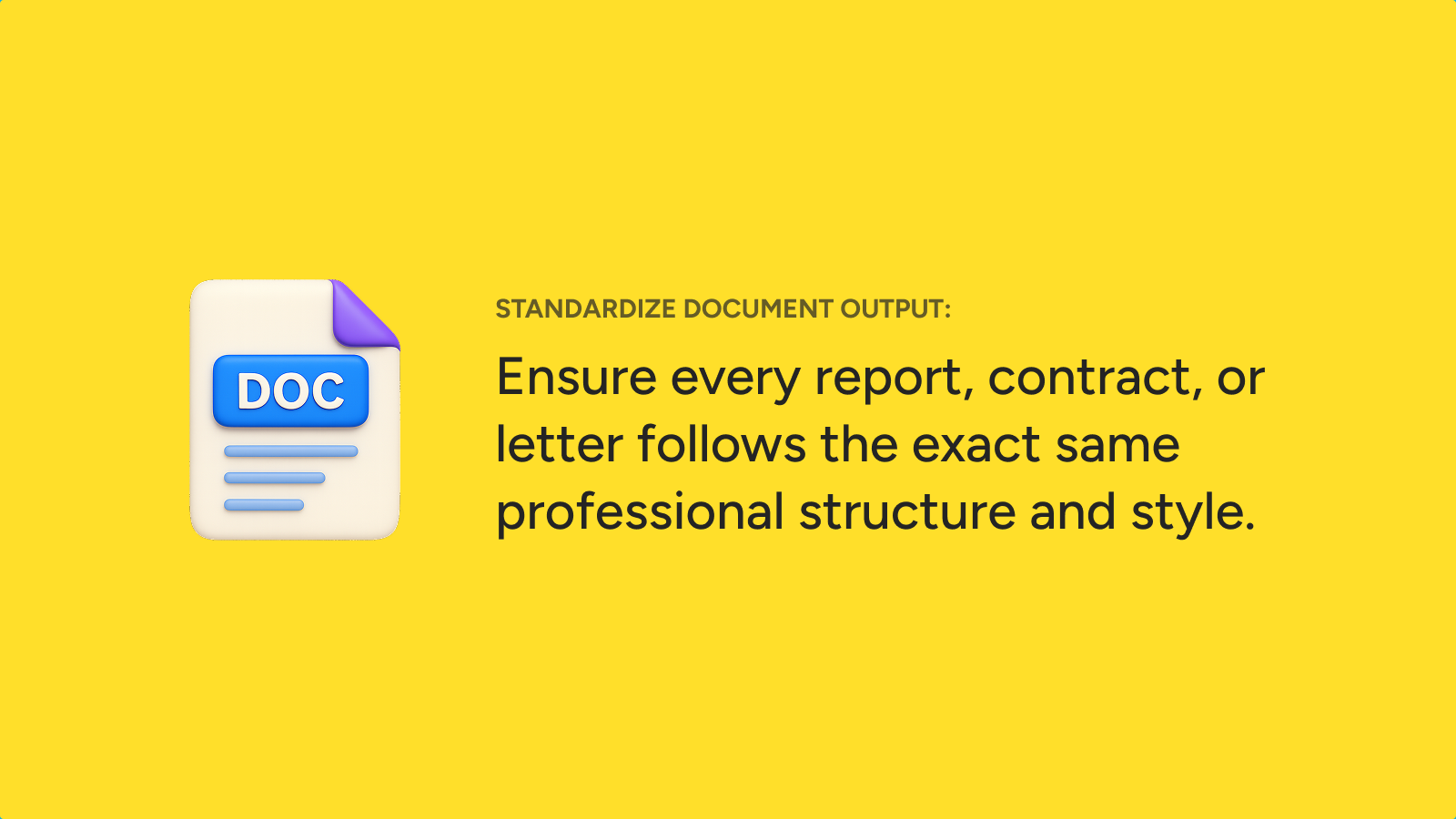 - Consistent branding: Ensure all generated documents adhere to your brand guidelines and style.