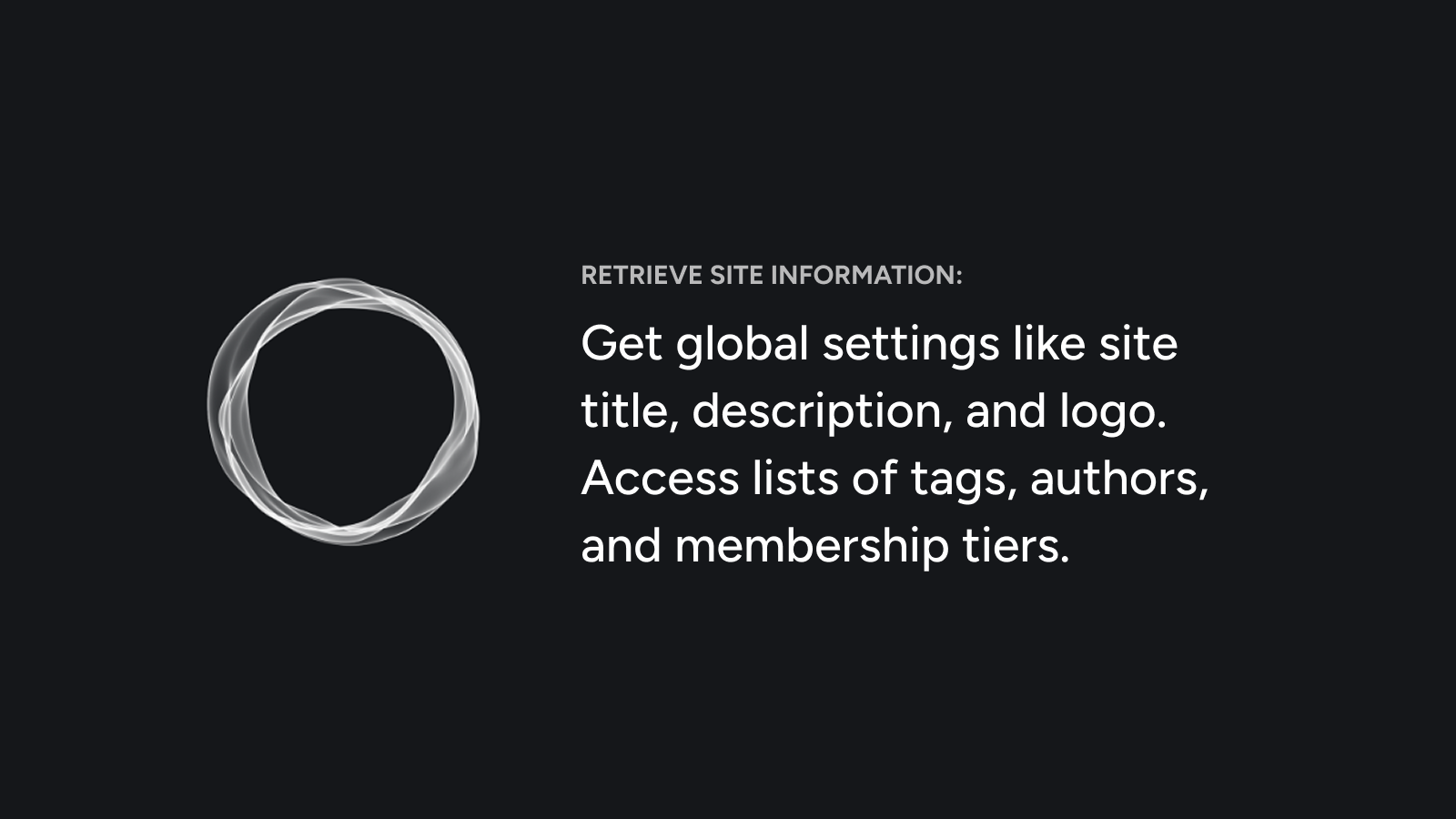 - Retrieve site information: Get global settings like site title, description, and logo. Access lists of tags, authors, and membership tiers.