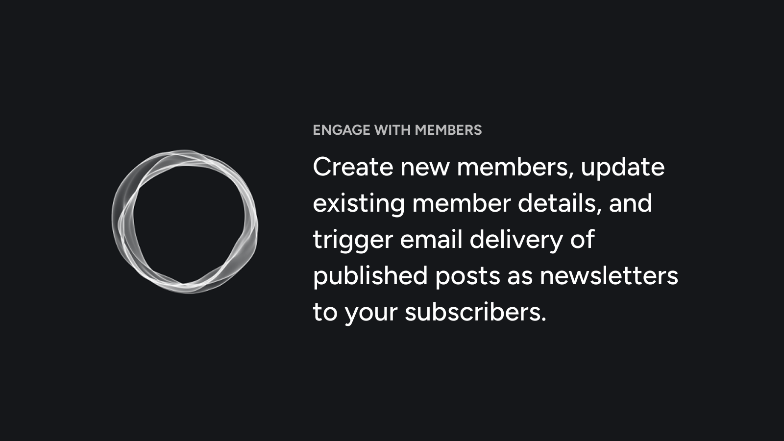 - Engage with members: Create new members, update existing member details, and trigger email delivery of published posts as newsletters to your subscribers.