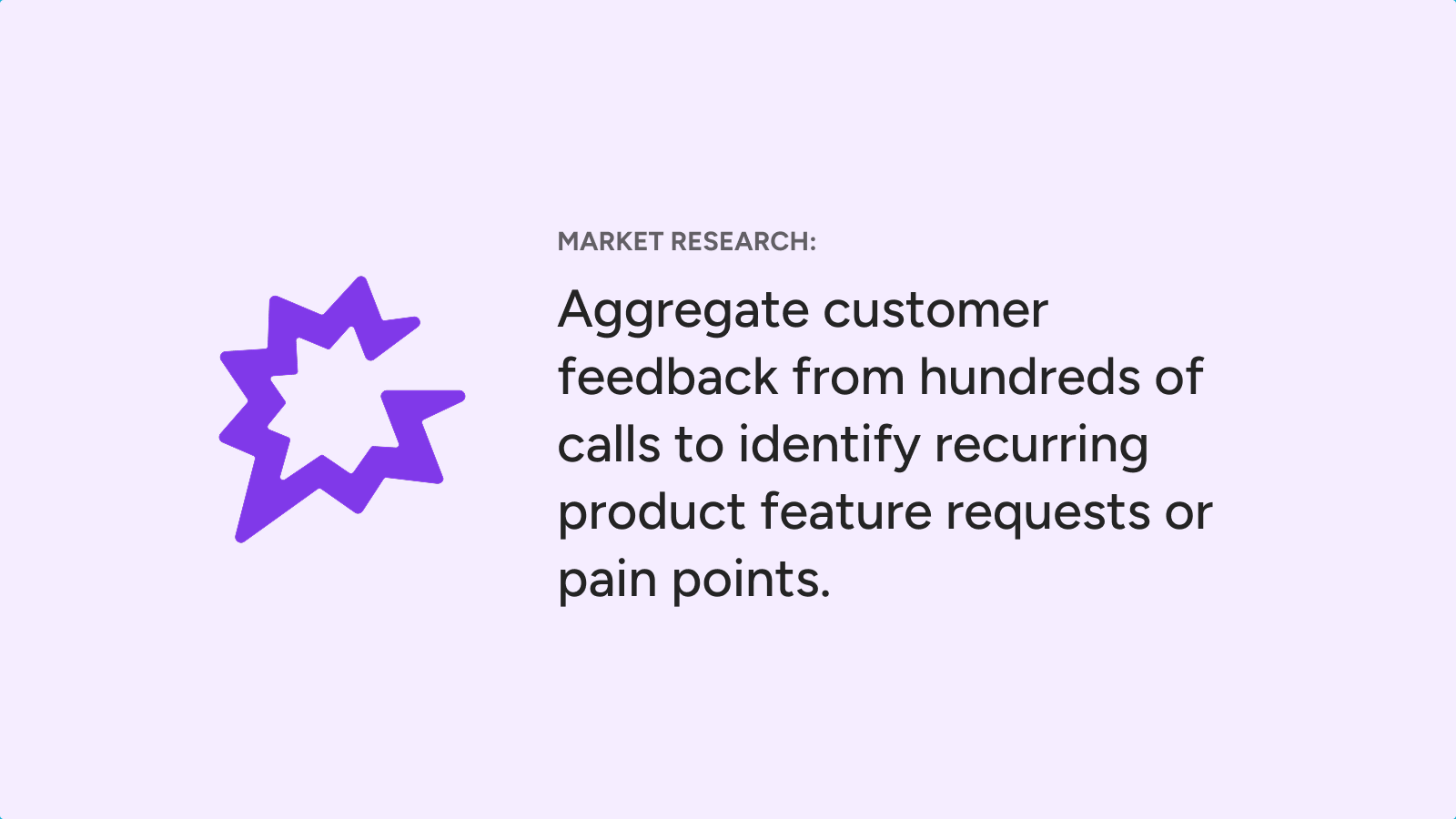 - Faster trend identification: Quickly spot emerging market trends or product feedback across numerous calls.