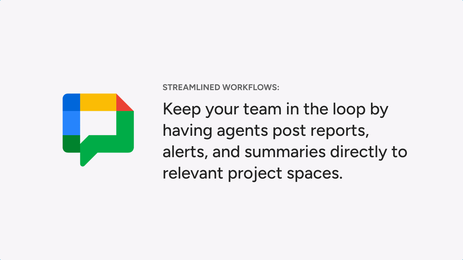 - Send text messages to any Google Chat space, supporting basic text formatting.