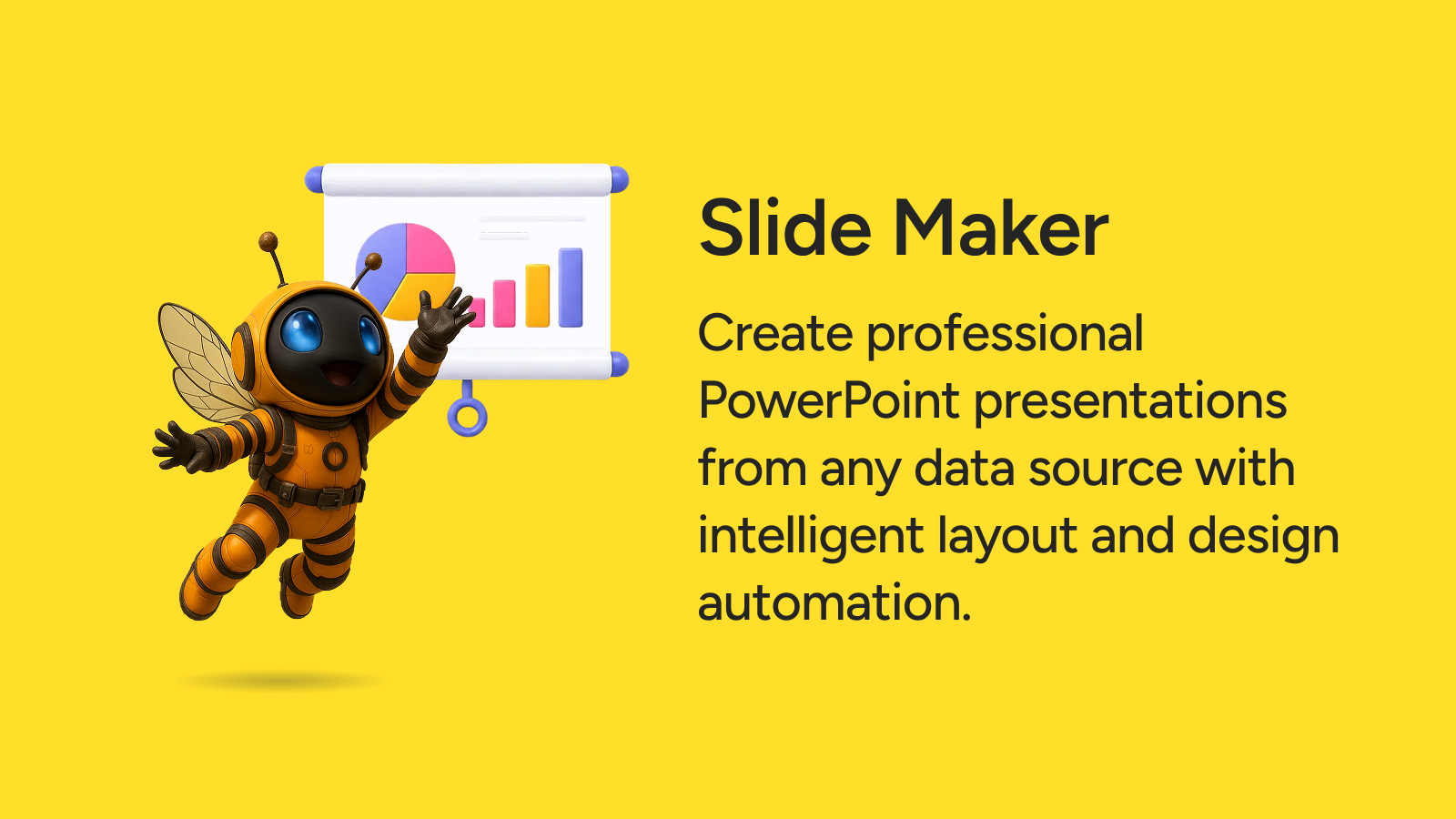 Empower your AI agents to generate dynamic and professional PowerPoint presentations with the Slide Maker integration. This robust tool streamlines PowerPoint creation through advanced automation, offering comprehensive control over slide content and design. Designed for efficiency and precision, Slide Maker enables your AI to handle complex presentation tasks from content generation to final layout.