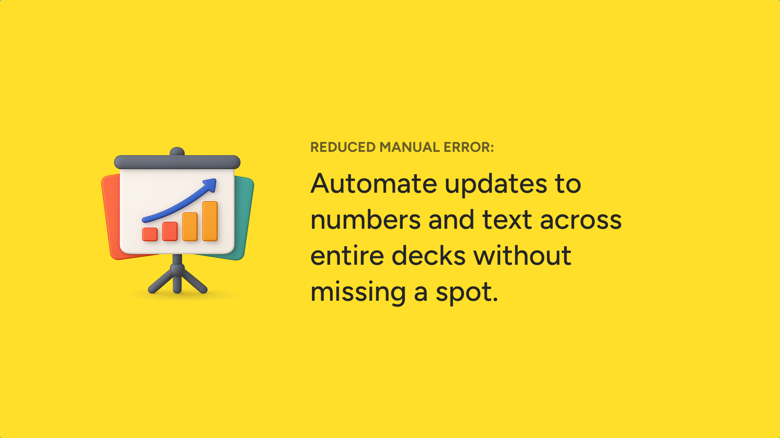 find_and_replaceaction to populate existing PowerPoint templates. This feature preserves original formatting, including fonts, sizes, and colors, ensuring consistent branding across all generated presentations. - Comprehensive slide manipulation: Beyond content, gain full control over presentation structure. Add new slides, insert images and charts, adjust text box properties like auto-sizing and margins, and precisely reposition elements. Manage slide backgrounds with solid colors, gradients, or full-slide images.